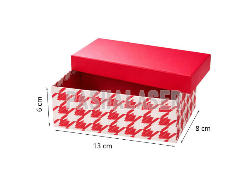جعبه هدیه قرمز طرح چهارخانه | مقوای سخت | سایز 13×8×6